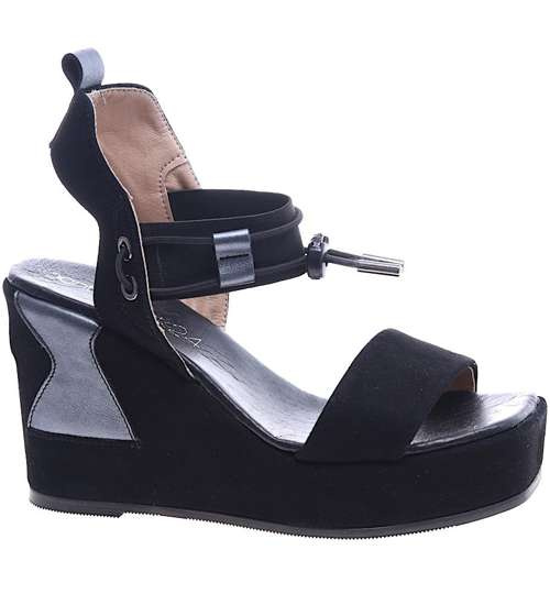 Skórzane czarne sandały damskie /D1-3 14379 T179/