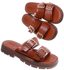 Brązowe klapki klamerki na niskiej platformie /E1-317662 G289/