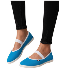 Niebieskie płaskie sandały z perełkami /C7-2 16364 G079/