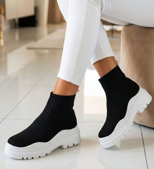 Klasyczne czarne trampki damskie z wysoką cholewką /H2 16707 G9-84/