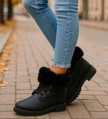 (ilość produktów: 530)Czarne dziewczęce trapery z futerkiem /D9-2 12735 T492 +H2/