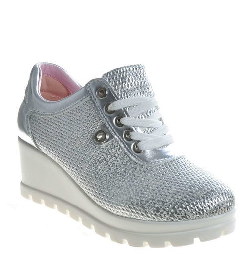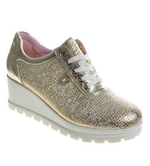 Materiałowe trampki na platformie sznurowane /J5-1 18492 W6/