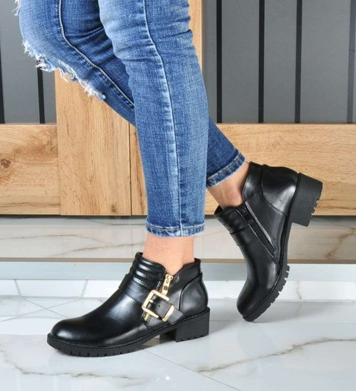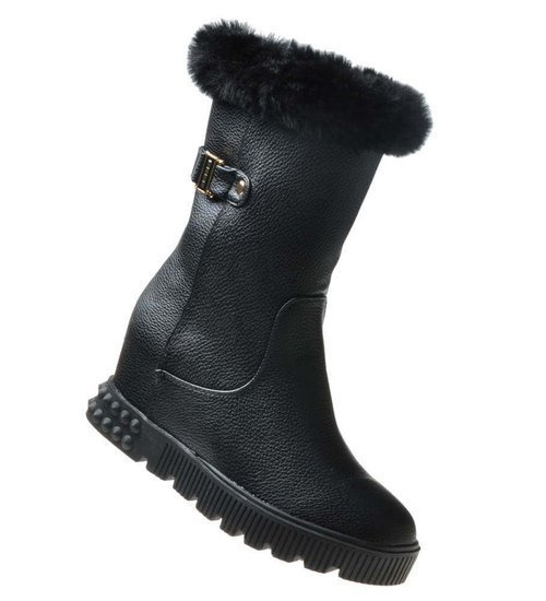 Czarne botki zimowe na grubym obcasie /E8-1 18558 G388/