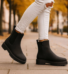 Kobiece czarne botki na niskim obcasie /A1-3 15248 T386/
