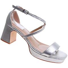 Srebrne sandały damskie na obcasie i platformie /A1-2 16349 G241/