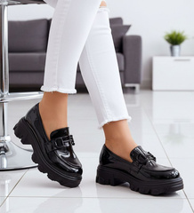 (ilość produktów: 610)Czarne półbuty mokasyny na platformie /F10-3 12671 T695/