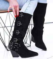 Czarne ażurowe kozaki na obcasie /A4-3 16790 T688/