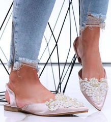 Beżowe płaskie sandały z perełkami /A10-2 16365 G079/