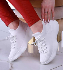 Białe buty sportowe na niskim koturnie i platformie /E2-3 13518 T236/
