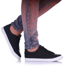 Sznurowane ażurowe czarne trampki /C6-2 12314 S197/