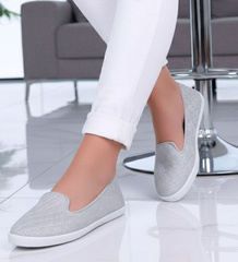 (ilość produktów: 383)Materiałowe srebrne tenisówki wsuwane balerinki pikowane /B2-3 15438 T133/