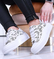 Białe damskie buty sportowe na niskiej platformie /B6-3 13665 S297/