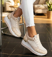 (ilość produktów: 842)Sznurowane buty sportowe na platformie Beżowe /G3-1 17423 T891/