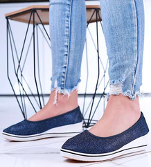 Granatowe wsuwane tenisówki na niskim koturnie /C6-2 14449 T137/