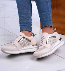 Ażurowe beżowe sneakersy na niskim koturnie /D9-2 13231 T592/