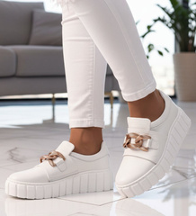 Białe skórzane damskie buty sportowe /G7-3 13603 N197/