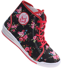 Wysokie dziewczęce trampki w kwiatki czarno-czerwone /A2-3 7544 S089/