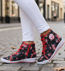 (ilość produktów: 214)Wysokie dziewczęce trampki w kwiatki czarno-czerwone /A2-3 7544 S089/