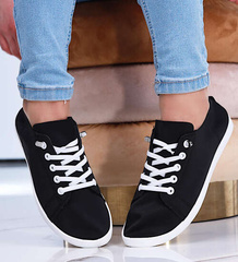 Czarne wsuwane tenisówki na niskim koturnie /G13-2 14496 T232/