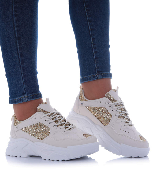 Złote buty sportowe na platformie /D8-2 17475 G391/