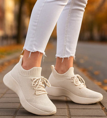 Beżowe sportowe buty na platformie /D8-2 10470 S295/