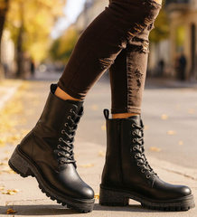 W sklepie Pantofelek24 dominują damskie glany sznurowane – będą pasować do niemal każdej stylizacji – kobiecej, miejskiej, militarnej, rockowej czy dziewczęcej. Alternatywą dla nich są modele z suwakiem błyskawicznym, których zakładanie i zdejmowanie to prościzna.