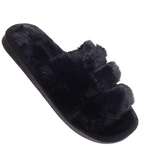 Pluszowe czarne kapcie dziewczęce /G11-1 17159 G8-6/