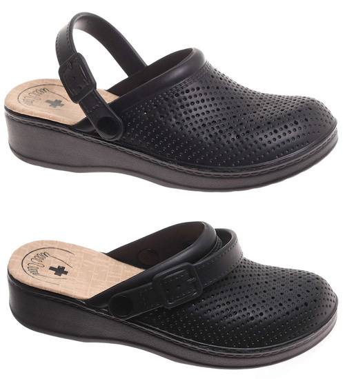 Czarne klapki damskie na koturnie /A6-2 13823 T195/