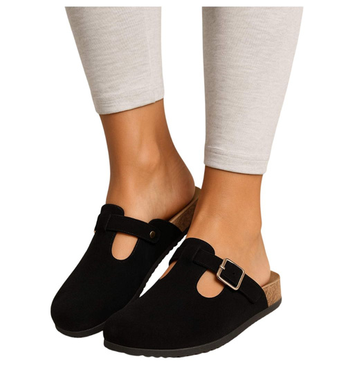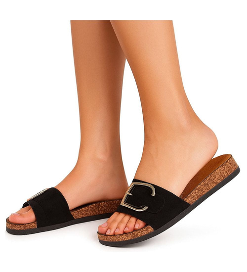 Czarne płaskie klapki damskie /B2-2 16173 T182/