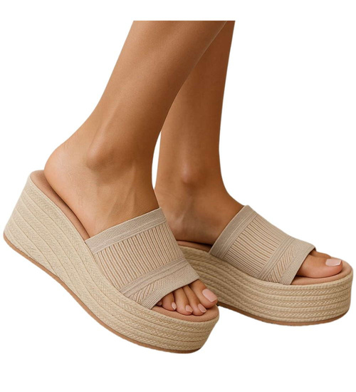 Beżowe klapki na espadryle na platformie /G7-3 17933 G287/
