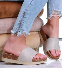 Plażowe beżowe klapki basenowe na platformie /C7-1 17700 G181/