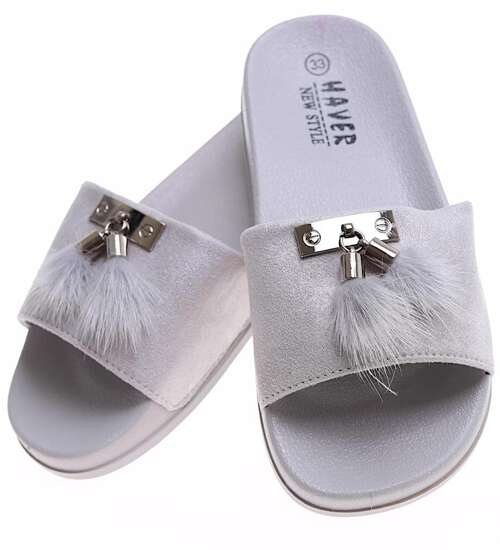 Dziewczęce szare klapki z perełkami /B8-2 16436 T290/