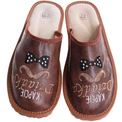 Skórzane kapcie męskie na prezent Dziadek Rządzi /C1-1 6642 S196/