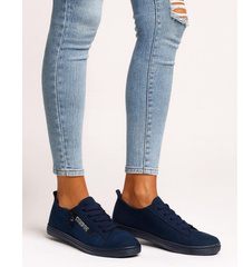 Granatowe trampki sneakersy na niskim koturnie /D6-3 13521 G099/