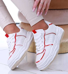 Białe damskie buty sportowe na niskiej platformie /B6-3 13665 S297/