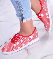 Wiązane czerwone tenisówki w gwiazdki /C6-1 11378 T099/