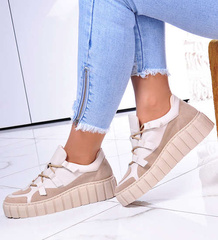 Beżowe skórzane damskie trampki creepersy /G2-2 11590 N0178/