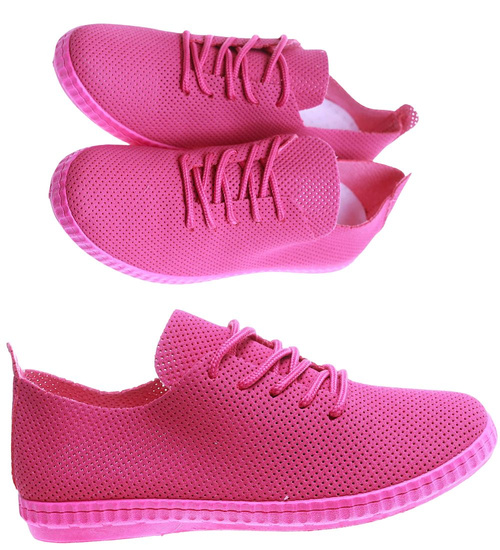 Fuksjowe ażurowe trampki damskie /A9-3 17616 T139/
