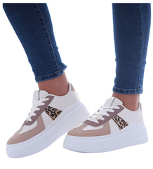 (ilość produktów: 550)Beżowe sznurowane trampki na platformie /F7-3 17430 G289/