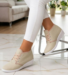 (ilość produktów: 556)Sznurowane beżowe trampki na niskim koturnie /B1-3 11147 S193/