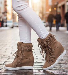 Lekko ocieplane damskie trampki sneakersy na koturnie /F2-3 18061 T238/