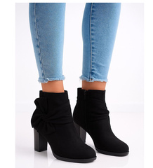 Czarne botki damskie na słupku /A7-1 16901 T227/