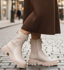 Zamszowe botki damskie beżowe /K3-3 18552 W222/