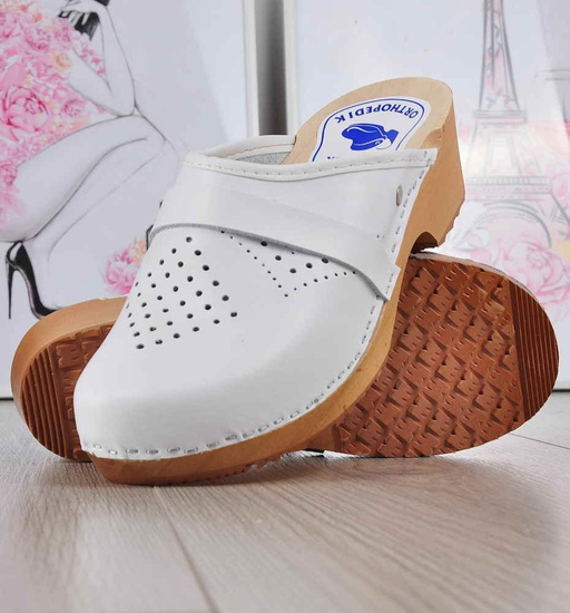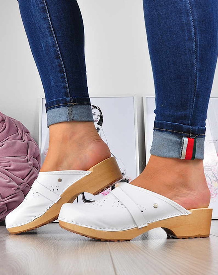 Skórzane beżowe kapcie damskie z wełną /D3-1 18465 S196/