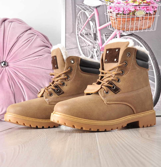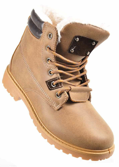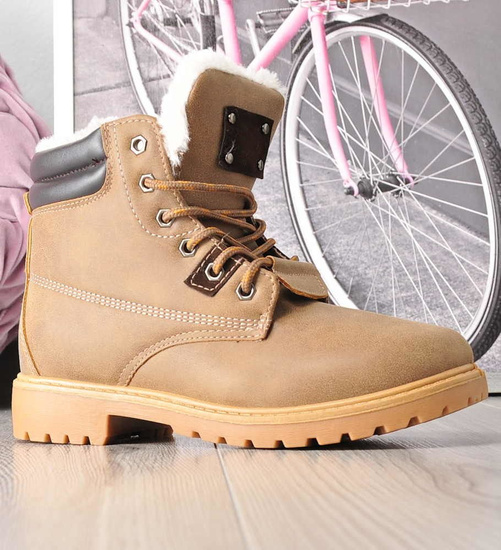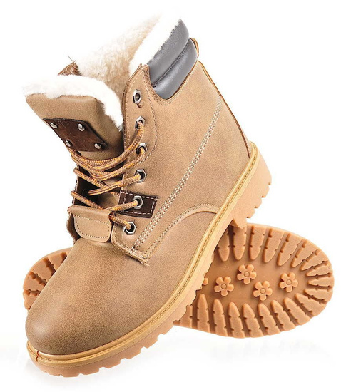 Zimowe beżowe botki damskie z ociepleniem /L3-1 18572 W222/