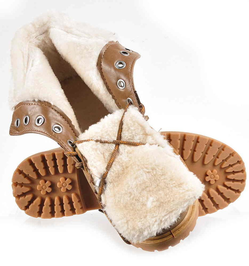 Zimowe botki trapery beżowe z cyrkoniami /A6-1 18574 W440/