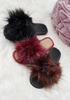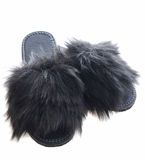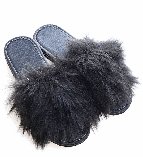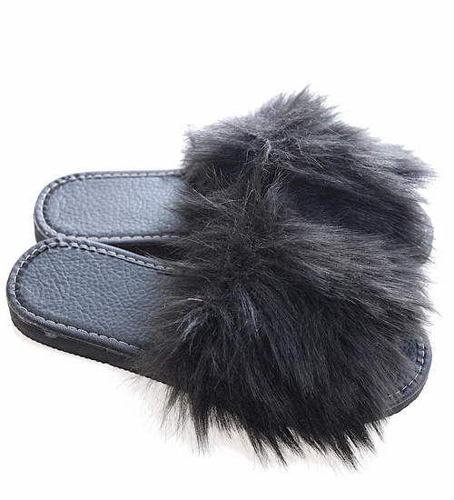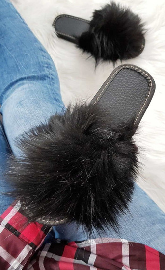 - Czarne klapki z futerkiem – pomysł na prezent.