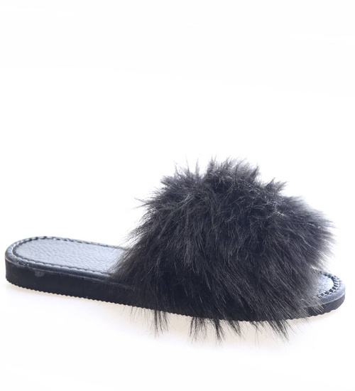 Czarne klapki z efektownym futerkiem /D5-1 2831 S197/