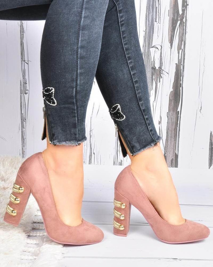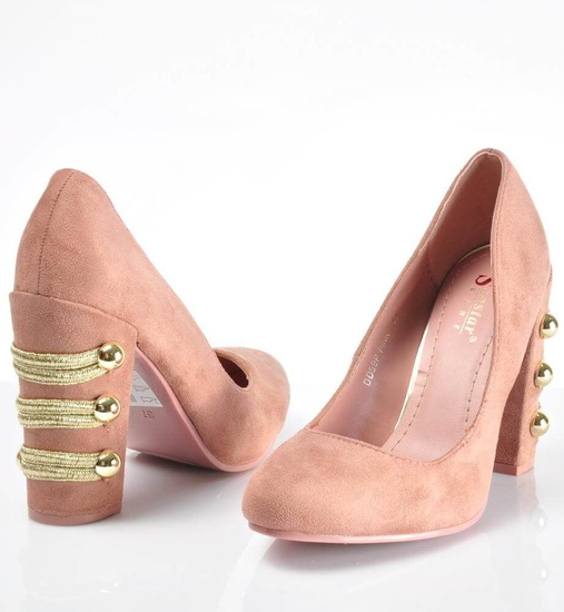 Beżowe sandały damskie na grubym obcasie /C4-3 16346 G340/