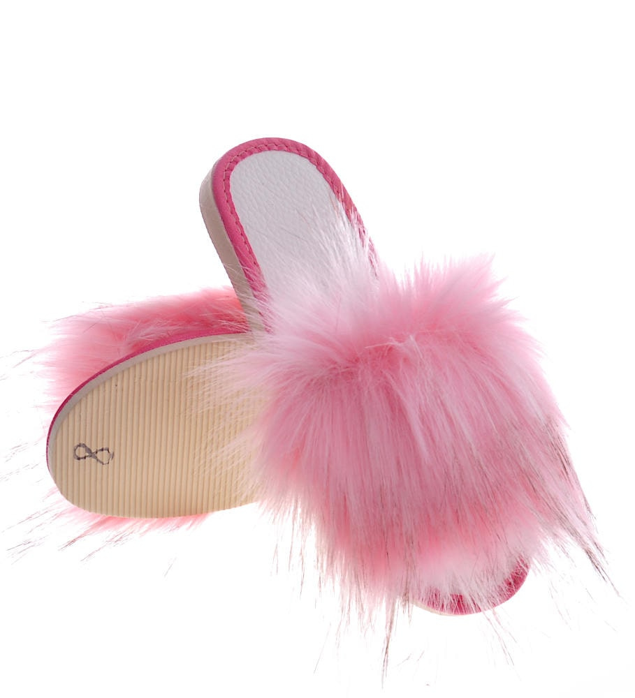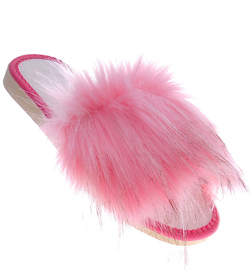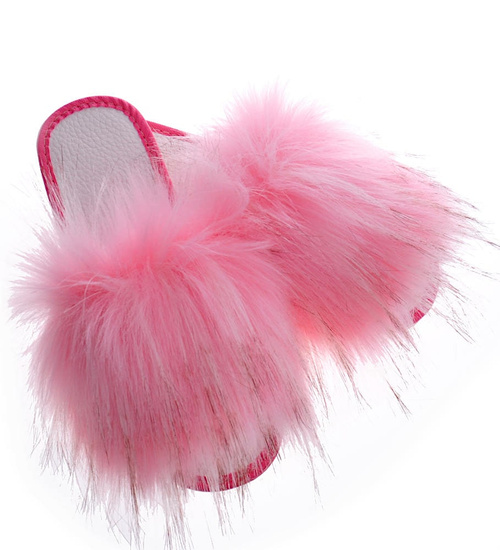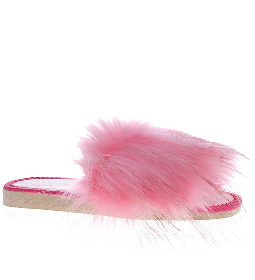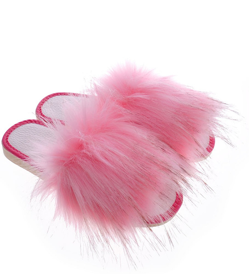 Różowe klapki z efektownym futerkiem /F5-1 3823 S197/